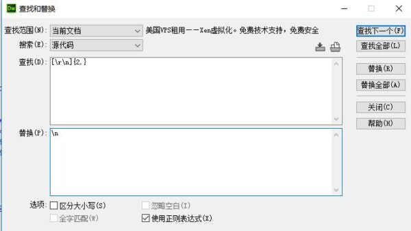 Dreamweaver可以使用正则表达式来删除代码中的空行,具体方法如下: